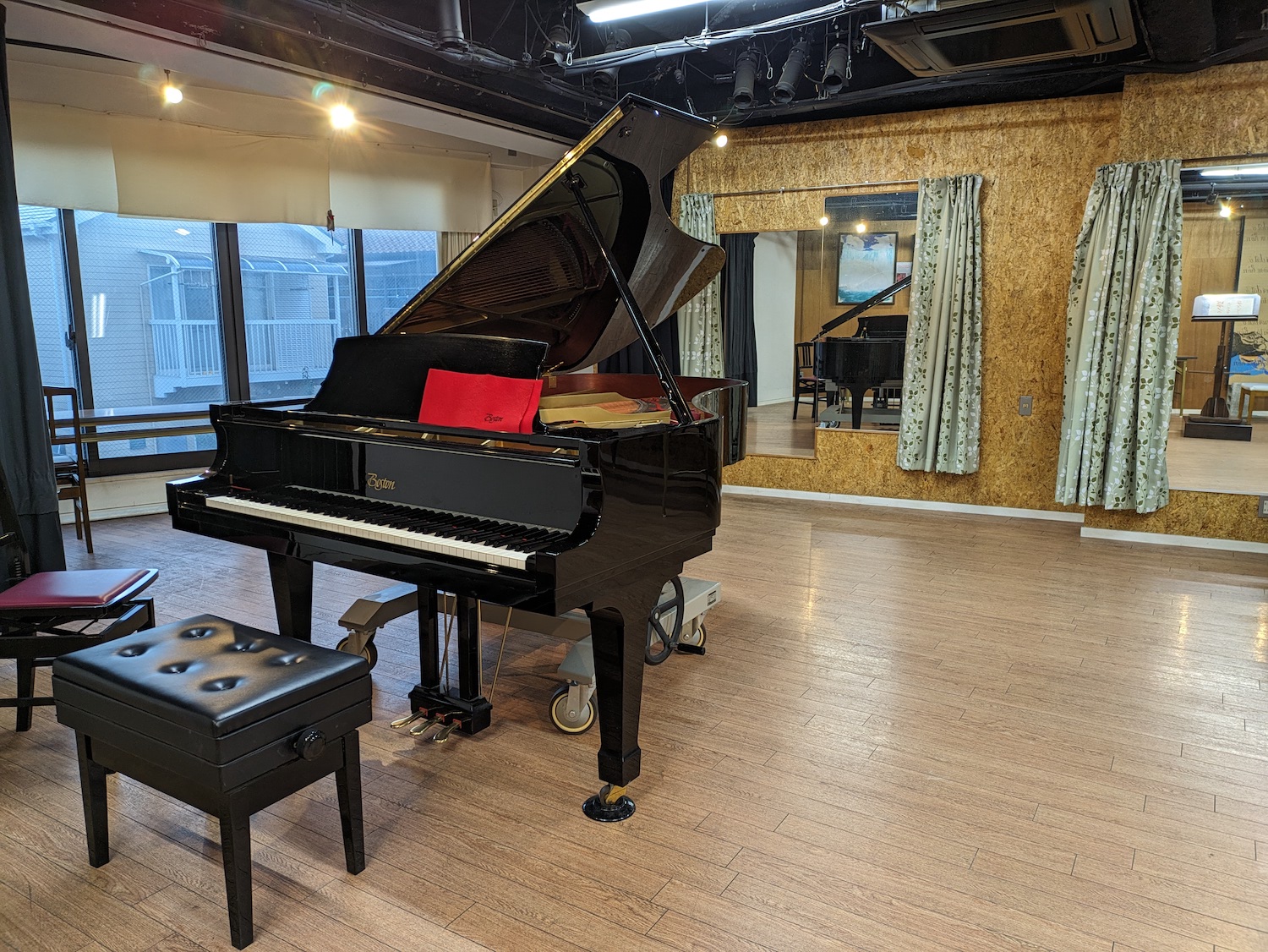 10人程度までの音楽練習に適したホールです。クラシック音楽・室内楽を前提にしていますので、電気楽器や大きな楽器の持ち込みはお断りしています。ピアノは名品 Boston218を設置しています。立地は近鉄奈良線八戸ノ里駅から北へ徒歩6分 / 東大阪市文化創造館の北、徒歩3分です。