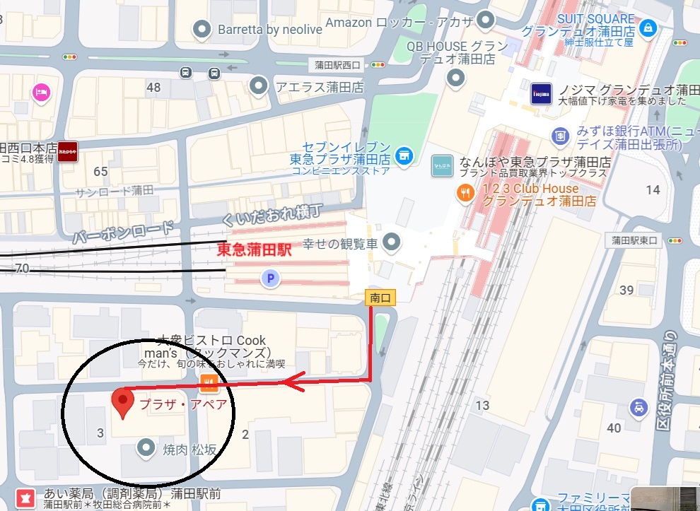 場所 蒲田駅南口 プラザ・アペア 03-3732-4122