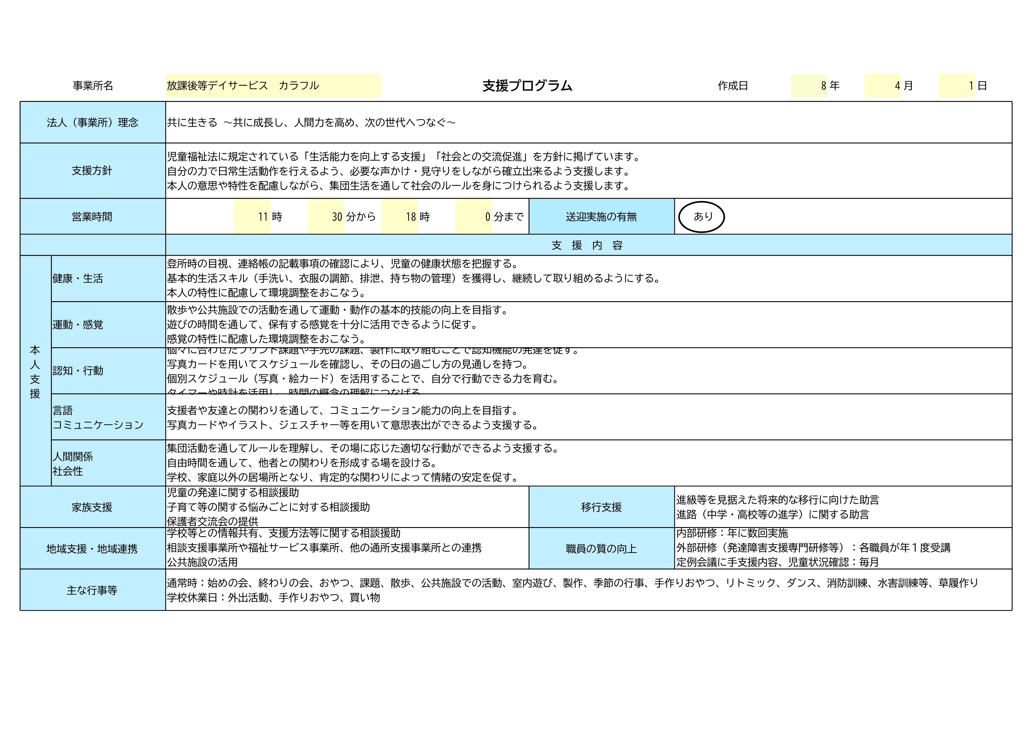 小学校支援級のお子さんを中心に、集団適応、ソーシャルスキル、学習支援、社会体験、手作りおやつ、買い物学習や公園活動、コミュニティセンターや児童館活動など行動・認知・健康・生活・運動・感覚・社会性・言語・コミュニケーション・人間関係・社会性を支援します。