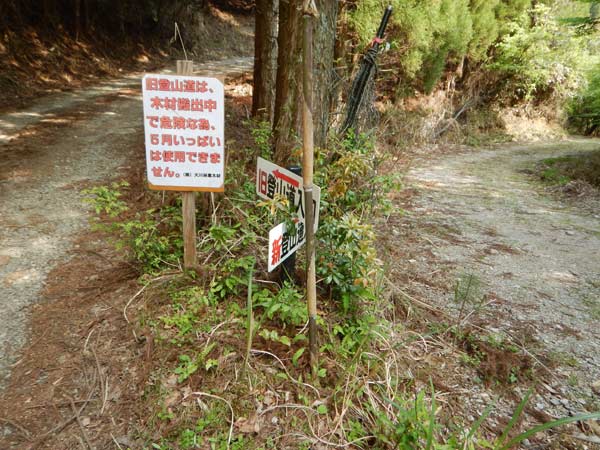 右の作業道から新登山道を登り、旧登山道を下山して左の林道を歩いて此処に戻って来る |