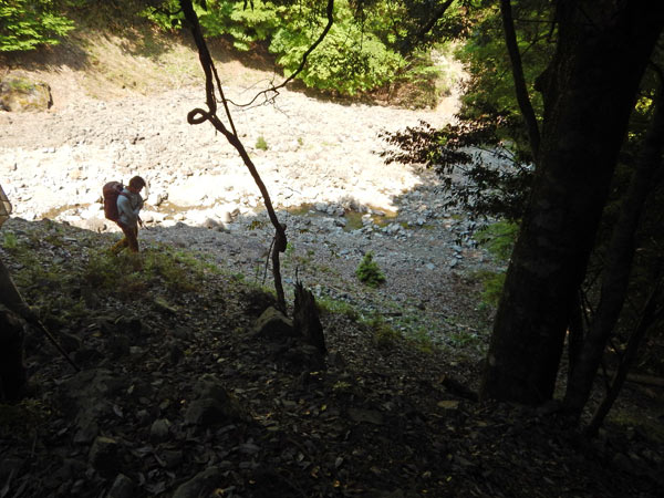 | 砂防ダムの少し手前から沢に下りる |