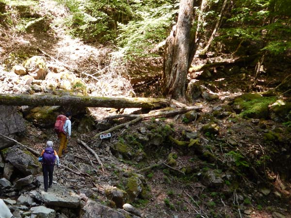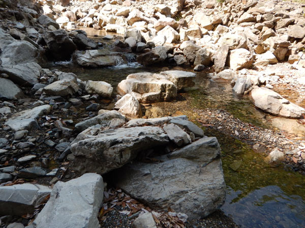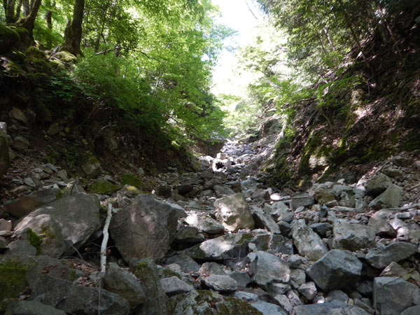 枯れ沢に沿って登る |