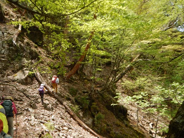 沢を渡渉して対岸に渡る |