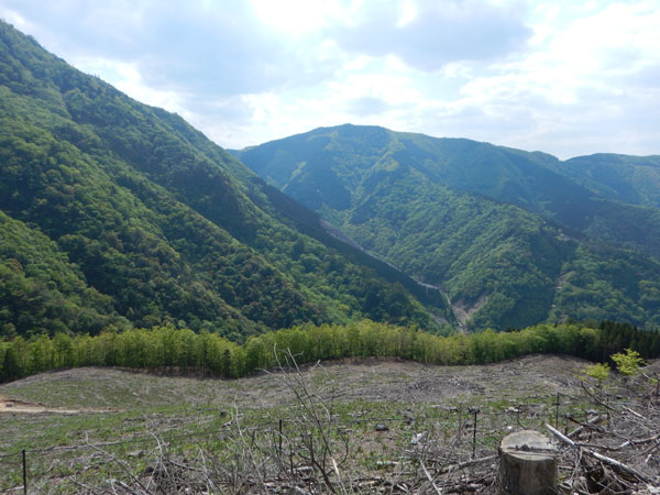 | 東に市房山の一部とその向こうに石堂山 |