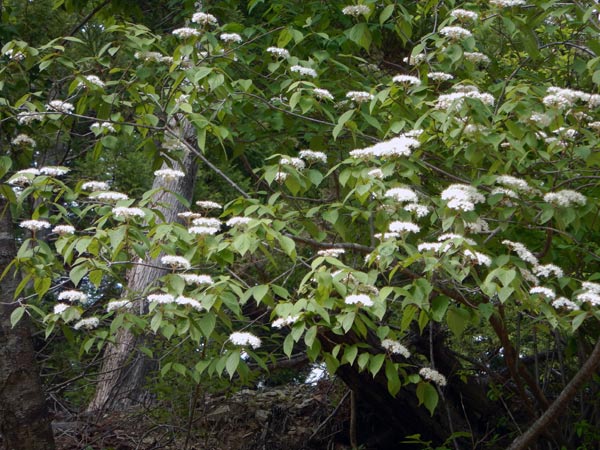 | 長い林道歩きの途中で見たアオダモとガマズミ
