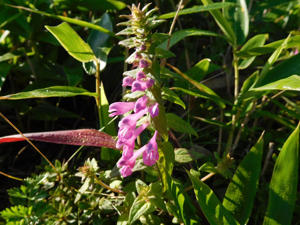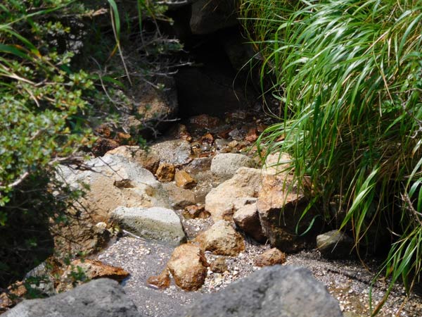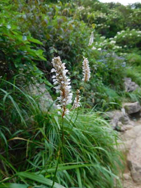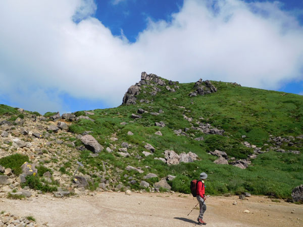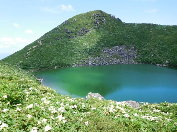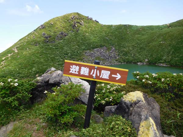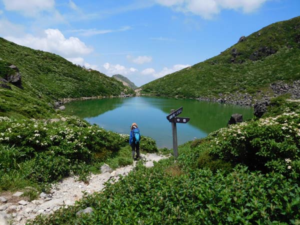 いつもは御池の縁を歩いて行くのだけれど今日は水量が多く通れそうにないので上の登山道を行く