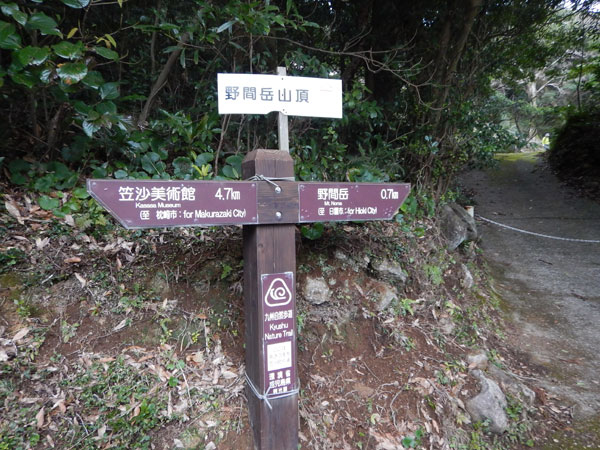 野間神社の石段を登って社殿の右横にある案内板のある所から登山を開始する。