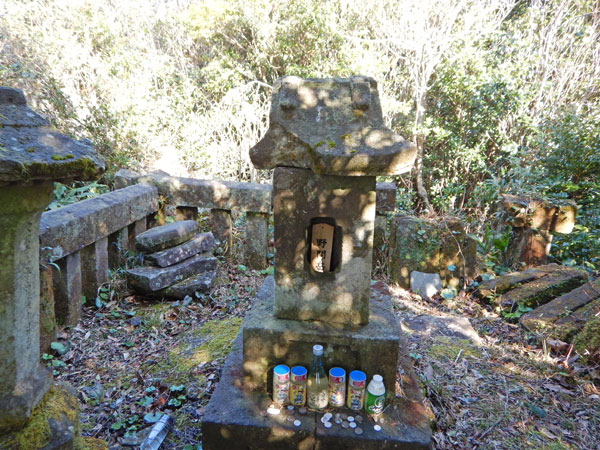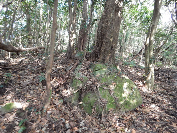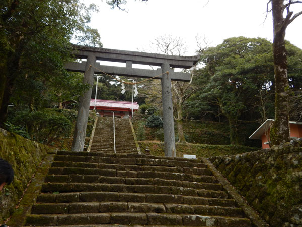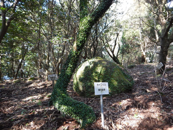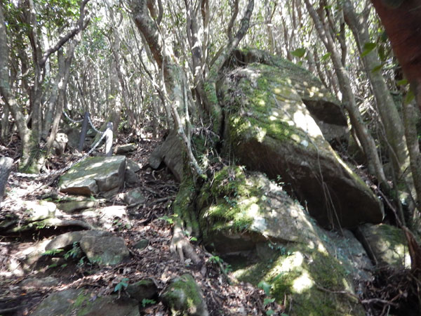 山頂で展望を楽しみ下山する。途中にある笠沙石門をくぐり抜けて行く。