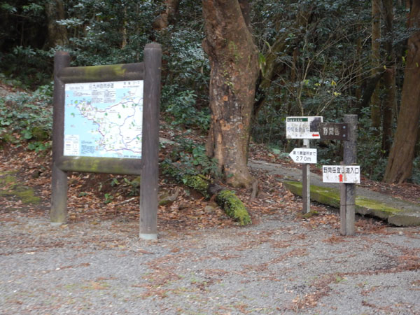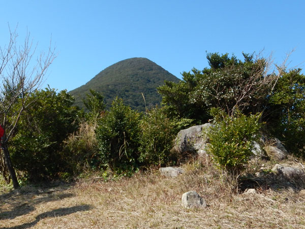 展望所からも野間岳山頂部が見える 展望所から5分程で登山口に到着、林道を少し歩いて周回を終える
