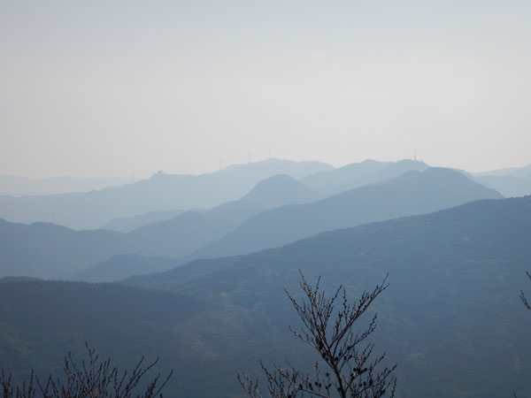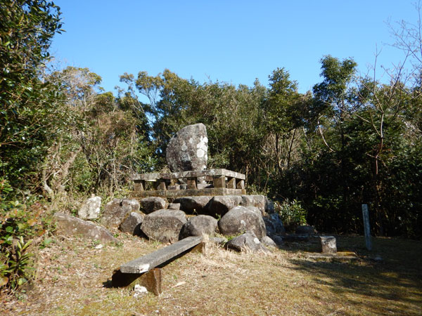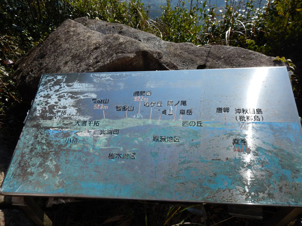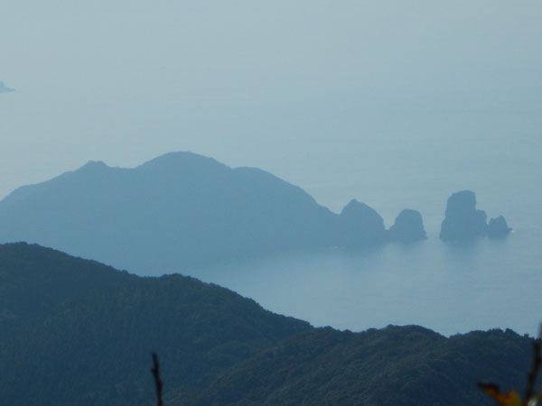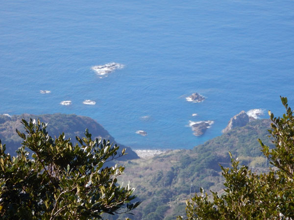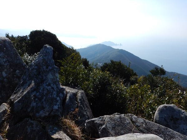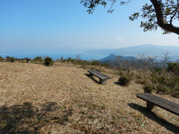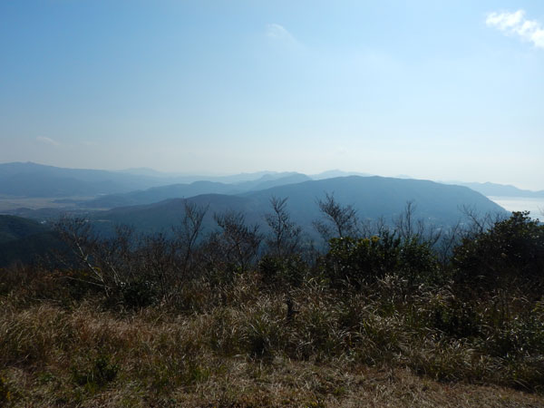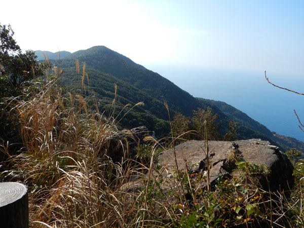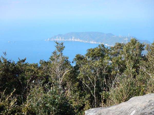 山頂の左に見晴らしの良い展望所がある 眼下広がる東シナ海、野間岬が見える